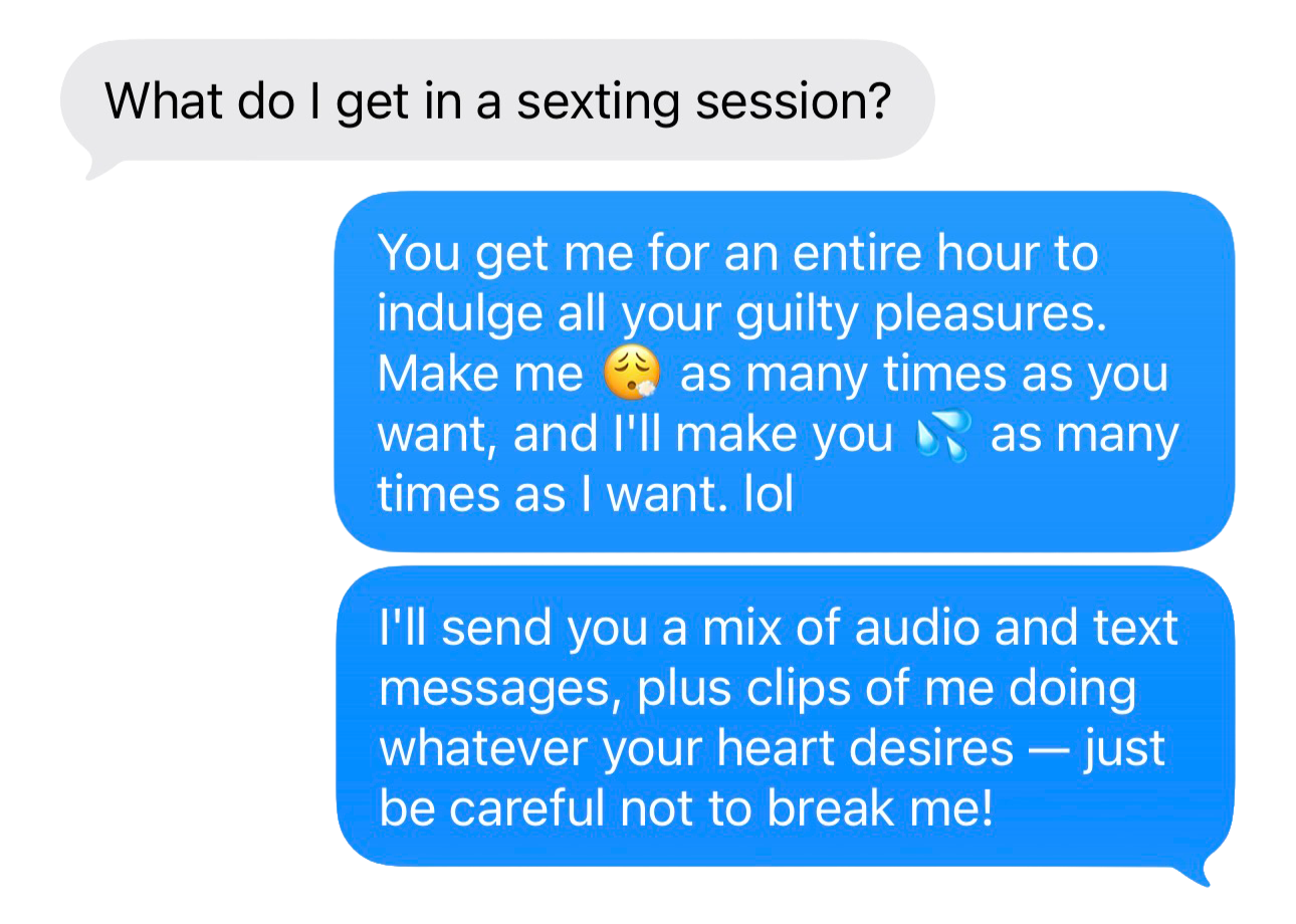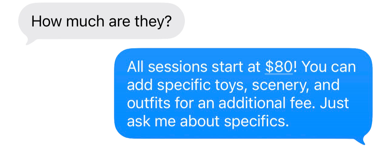 All sales are final. Due to the personal and intimate nature of the services provided, no refunds will be issued under any circumstances once payment is received.